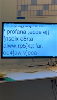 A Monica se cobriu de palavras escritas com jenipapo com a ajuda de performers e assistentes do coletivo NeoTao https://neotao.info e montamos um sistema composto de um microfone sem fio, um desktop com o Via Voice instalado e um programa de Bloco de Notas aberto e um projetor de vídeo.